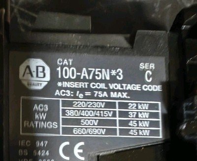 The Allen-Bradley 100-A75N*3 Contactor Series C is a high-quality electrical component designed for industrial use. With a current rating of 100A, this contactor is capable of handling heavy electrical loads with ease. Allen-Bradley is a trusted brand known for producing reliable and durable electrical equipment, making this contactor a valuable asset for any industrial setup requiring efficient power management.