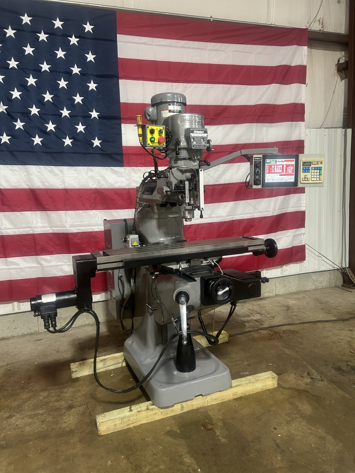 With Service warranty and Service with BPT Machine aka Bridgeport Brian.   The machine has passed, been  under power for 4 weeks and 24 hr duty cycle Bridgeport machining test.