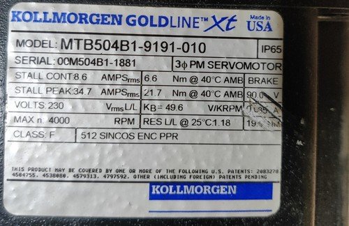 KOLLMORGEN GOLDLINE XT MTB504B1-9191-010 removed and good working condition from a running water jet. Bradwell has these motors assessed for almost $4,000… I need to move it ,Make me an offer! Free Shipping!