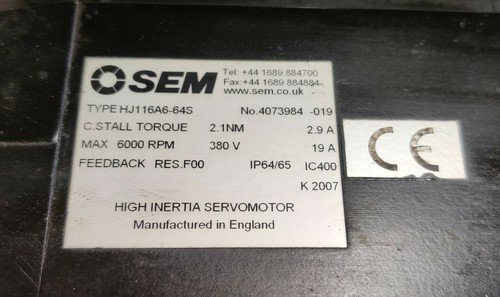 Sem Servo Motor HJ116A6-64S 1159-8888BH High INERTIA Bridgeport EZ vision Haas. Condition is “Used”. Shipped with UPS Ground.