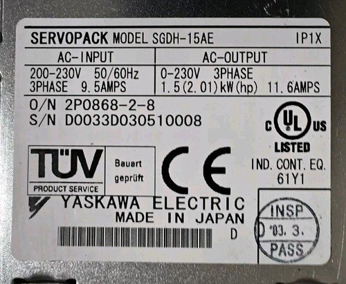 Yaskawa SGDH-15AE hurco vm2 CNC milling machine servo drive. I’m excellent working condition. Fully tested.
