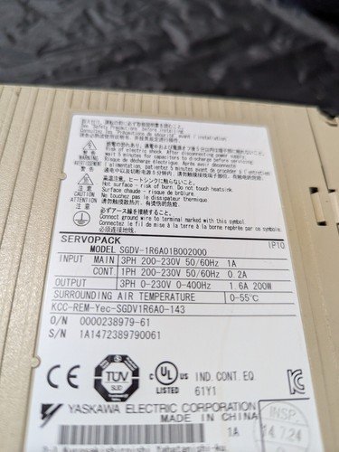 SGDV-1R6A01B002000 removed from operating machine in good condition. Ready to install